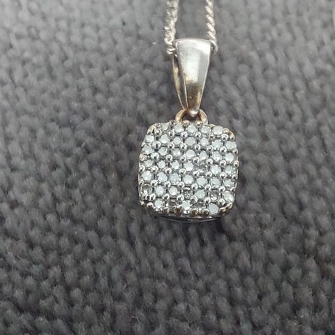 Anhenget har flere rader med briljantslipte diamanter som glitrer veldig fint og ser eksklusivt ut.