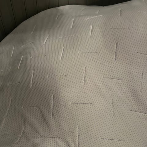 Overmadrass med hvitt trekk. Kjøpt på Jysk i sommer. Skulle brukes i seng til 6-åring, men da den opplevdes for hard for han ble den kun brukt i noen netter.