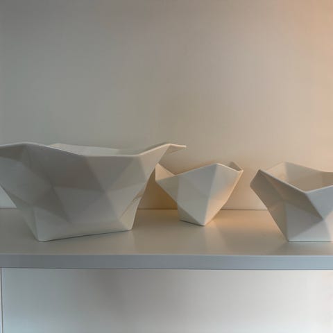 Muuto crushed Skål i hvit porselen med en størrelse på 31 cm. Skålen har et geometrisk design og kan brukes til servering eller som dekorasjon.