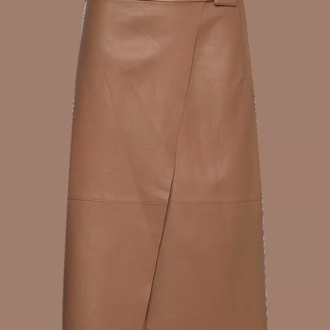 Notes du Nord skinn skjørt i størrelse M, svart farge. Skjørtet har belte og glidelåslommer foran.