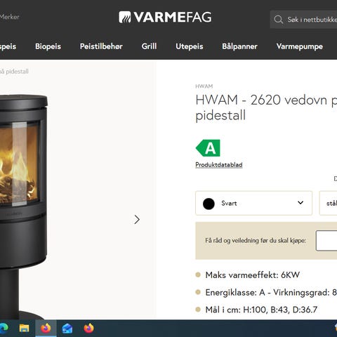 Snart 3 år gammel TermaTech vedovn med glass på tre sider selges. Lite brukt.
