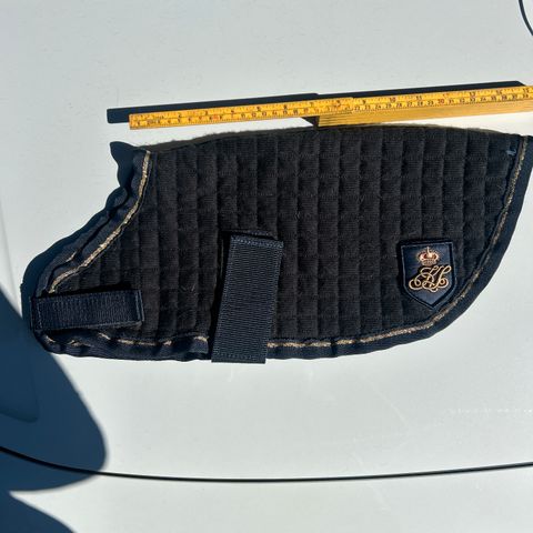 Hundedekkeni 600D polyester med PU overtrekk og fleece foring. Elastisk bånd bak og velcro lukking foran og under. Reflekterende pyntesnor langs kanten. Brodering og bedriftslogo på venstre side.