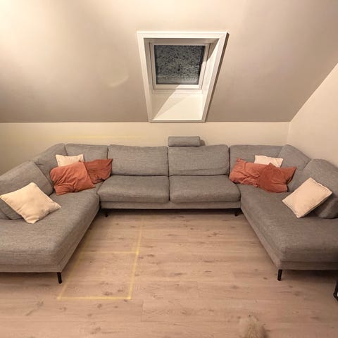 Sofaen er ellers i grei stand og svært behagelig.