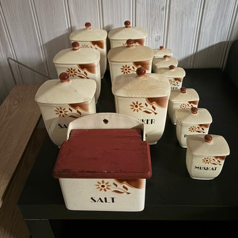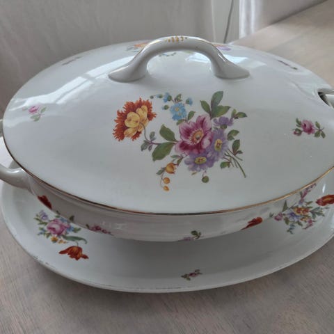 Selger deler til et nydelig spiserisett fra Lübeck. Pent brukt, men man ser tydelig aldersmerker. Lite nagg på Riis og noen nesten ikke synlige nagg på Raffiinade. Hentes i Oslo eller sendes.