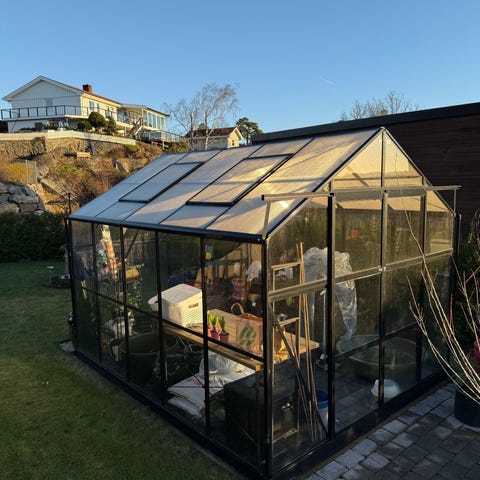 Vinterpris! Jeg selger et helt nytt drivhus, fremdeles flatpakket i sin opprinnelige emballasje. Unntaket er sokkelen som er skrudd sammen, og demontert igjen . Dessverre viser det seg at jeg ikke har et egnet sted for drivhuset.