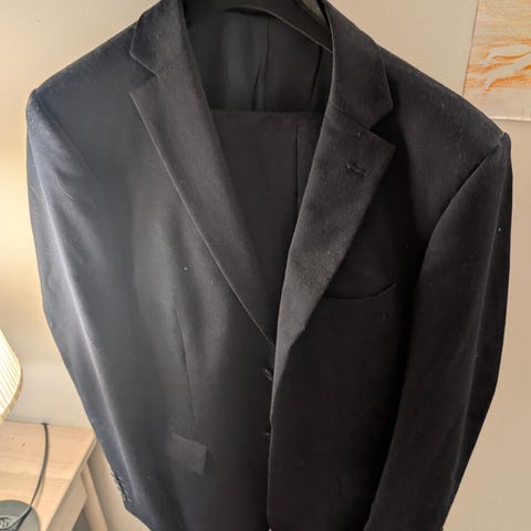 Dressmann Ull Blazer i størrelse L for herre. Jakken er svart og laget av en ullblanding. Den har et rutete mønster og foret med flere lommer på innsiden. Passer til formelle og semi-formelle anledninger.