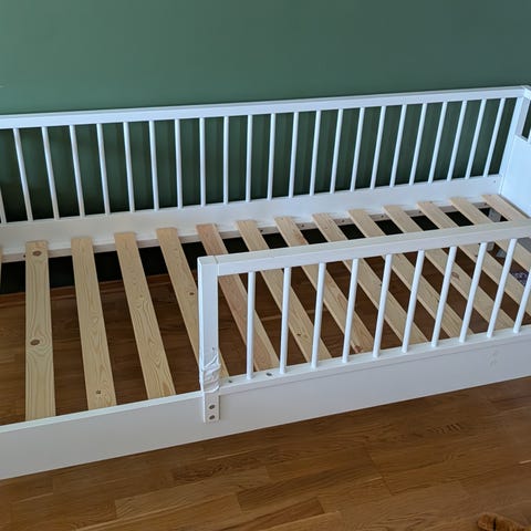 Juniorseng kjøpt ny på Jollyroom selges 500kr. Sengen har noen små bruksmerker etter klistremerker på sidepanel som kan vaskes bort ellers i bra stand 😊