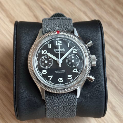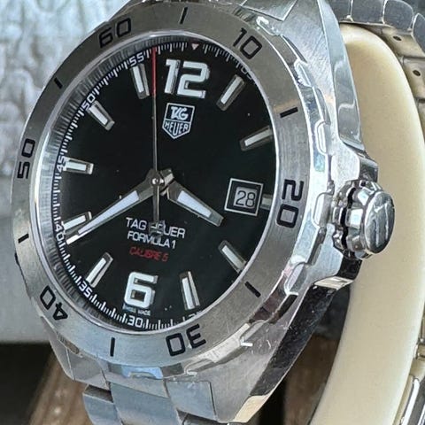 ▪︎ Funksjoner: Timer, minutter, små sekunder, dato, kronograf (30-min subdial + sentral sekundviser), tachymeterskala