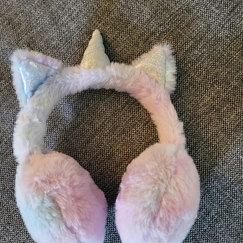 julegave adventsgave bursdagsgave unicorn rainbow regnbue rosa lilla blå earmuffs ørevarmere