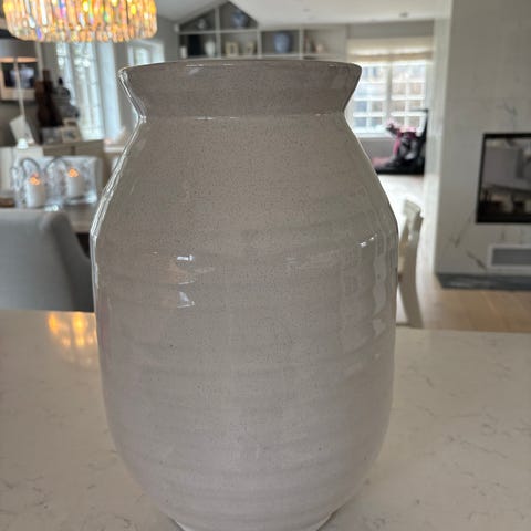 Jeg rydder i forbindelse med flytting, og selger en nydelig vase 2 liter fra Le Creuset i fargen Cream. Høyde er 19 cm.