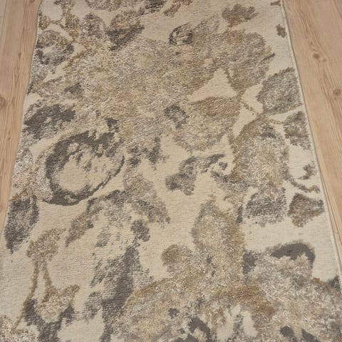 Teppe «Snabbfotad» fra IKEA. Grått og hvitt. 100% nylon. Underside lateks gjør at teppet ligger godt på gulvet. Mål: 160 x 135 cm