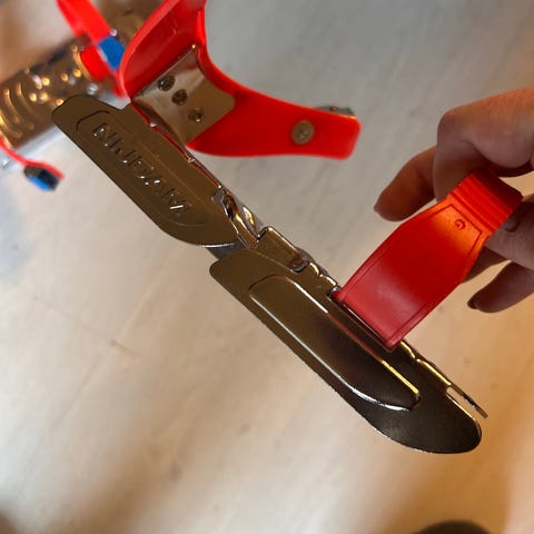 Blå, passer til størrelse 9¼"(~23.5cm) jern, men kan justeres.