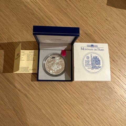Selger en offisiell Monnaie de Paris Art Gothique sølvmynt fra 1999, del av Europa-serien.