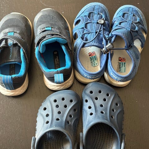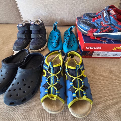 Kjempefin pakke til gutt, str. ca. 32–34. Alle sko er brukte, men fortsatt i god/bruktbar stand – perfekte som ekstra sko til barnehage, SFO eller ferie.