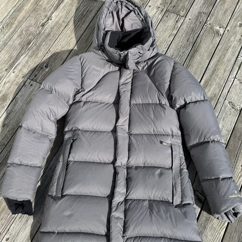 Fleischer Couture dunparkas i størrelse M/38 for dame. Jakken er svart og laget med dun og fyll som isolasjonsmateriale. Den har hette og lommer, og er designet for å gi varme og beskyttelse mot kaldt vær.