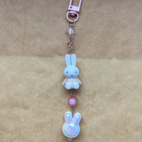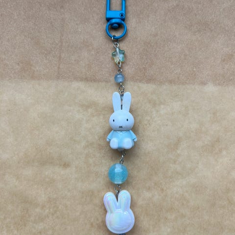 Søt liten bachcharm eller nøkkelring i plysj med ris innvendig på undersiden. God å ta på.