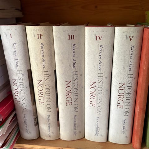 Historien om Norge bokserie med flere bind som dekker norsk historie gjennom ulike perioder og temaer. Bøkene inneholder illustrasjoner og historiske beskrivelser. 5 bøker i serien, skrevet av Karsten Alnæs. Bøkene er i god stand. Bør hentes da det er 5 bøker.