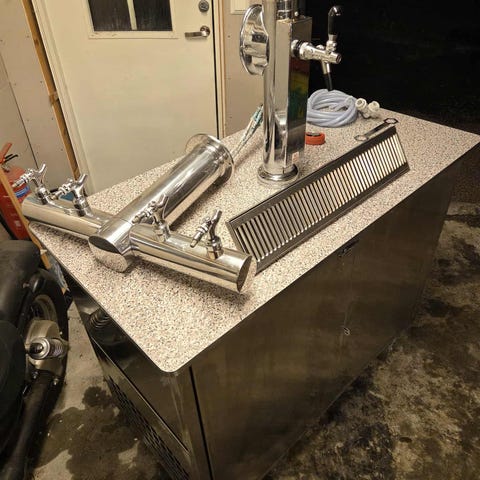Selger et helt fungerende tappetårn med 4 tappe muligheter og mulighet til og justere trykket på alle 4 kranene. Får plass til 4 Cornelius fat.