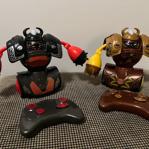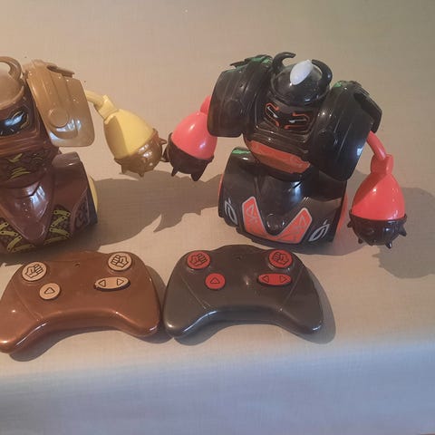 To fjernstyrte roboter som skal sloss. Fungerer som de skal og ingen skader eller merker. Samme som disse her: https://www.jula.no/catalog/fritid/fritidsaktiviteter/leketoy/radiostyrt/radiostyrte-roboter-016242/?gclsrc=aw.ds&gad_source=1&gad_campaignid=19748509190&gbraid=0AAAAACuKtioHeFfmekWHiCpm9ZWNN7uF3&gclid=EAIaIQobChMI1-Sz166pkQMVnxiiAx38rwKPEAQYASABEgKS0fD_BwE