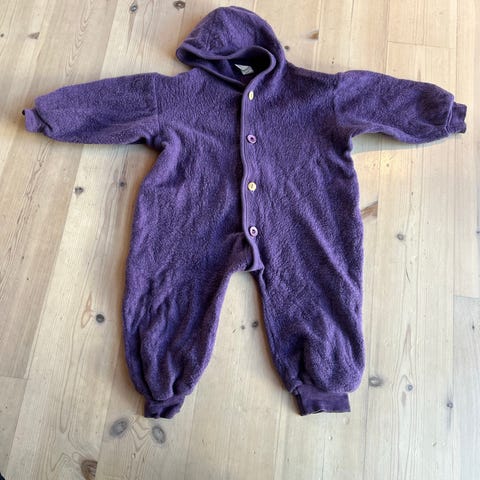 Varm og lett ulldress med fine treknapper og hette.