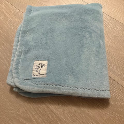 Pent brukt pledd med Fantorangen i størrelsen 70x95. Fargen er turkis/lys blå.