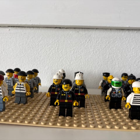 Dette er en fin blanding av klassiske figurer som politi, brannmann, pilot/mekaniker, samt en pirat-/eventyrfigur. Perfekt for barn, bygging, ekstra figurer til byen eller som reservedeler.