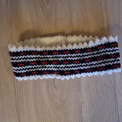 Flott ull dobbelt pannebånd i sort/hvitt.