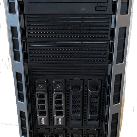 Serveren fungerer fint og har stått som intern host. Maskinen har gode spesifikasjoner, kraftige Xeon-prosessorer, mye RAM og LSI RAID-kontroller.