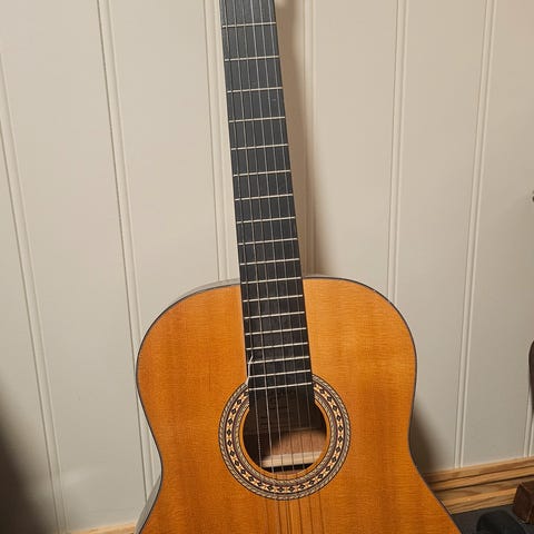Mangler en streng , stålstrenger ellers hel og grei, selges kr 700 den befinner seg på Stjørdal kan leveres Trondheim eller sendes ring 95734121 for info