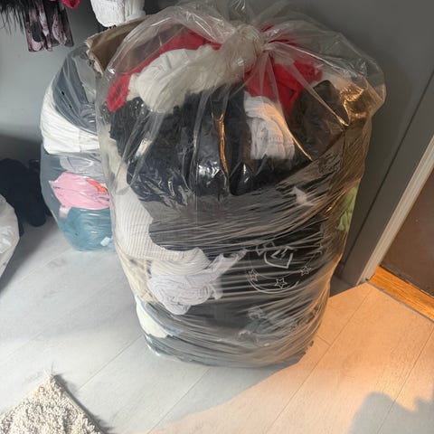 Selger en sekk med klær. Blir ikke brukt noe spesielt lenger. noe brukt mye andre ting nesten ikke brukt.