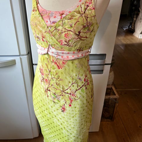 Pen kjole med artig rysjekant nederst, som gjør at den faller fint.