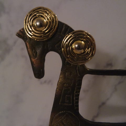 vintage øredobber i metall og gullfarge.