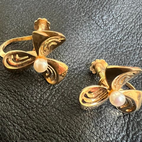 Vintage klipsøredobber gullfarget med "perle".