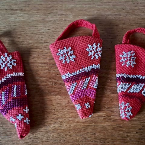 To fine kremmerhus til jul i kobber og messing. Litt bruksspor, men dette er jo noe av sjarmen. God størrelse, 15 og 20 cm lange pluss håndtaket. Prisen er for begge samlet.