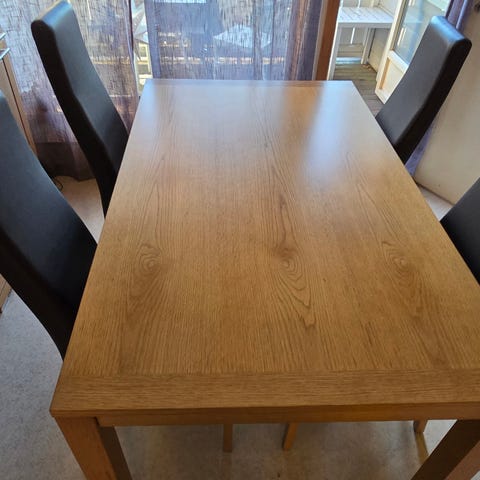 Veldig pent brukt bord + 6 skinnstoler + 50cm innlegg