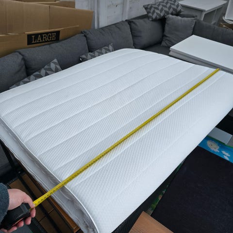 Kjøpt i fjord. Den passet ikke meg da jeg sliter med nakkeproblem og sover mye på siden, så jeg må ha en ganske tykk overmadrass for å avlaste skuldrene. Jeg har pakket den inn i plasten til min nye overmadrss så den er lett å ta med seg.