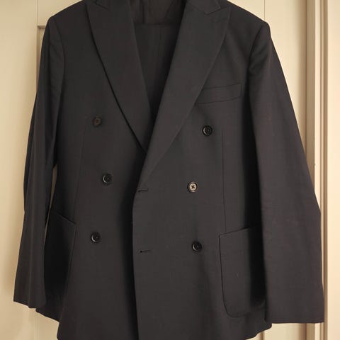 These Glory Days Blå ull dressfor herre i størrelse 48. Laget av 50 % ull, 48 % polyester og 2 % elastan. Kjøpt til konfirmasjon. Brukt 6 ganger
