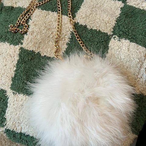 Søt fuskepels veske , med plass til det nødvendigste! Det er bedre plass i den, enn det ser ut til. Som mobil, liten lommebok og litt sminke, nøkler. 😊