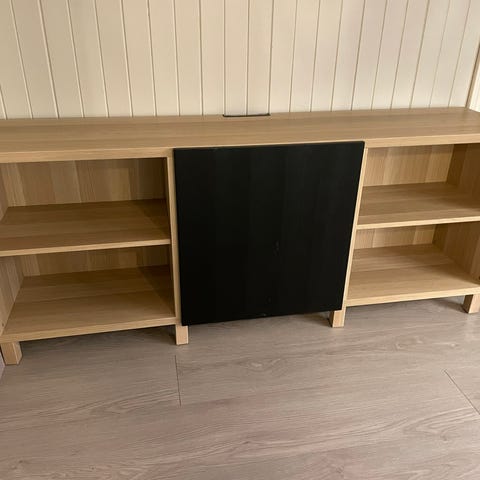 Pent brukt , noen små bruksmerker , den ene komodden / vitrinen har led lys . Skuffene må strammes opp litt , TV benken har noen skraper . Selges grunnet ommøblering . Pris kan diskuteres ved rask henting grunnet oppusing , trenger plass til nye møbler som allerede er kjøpt .
