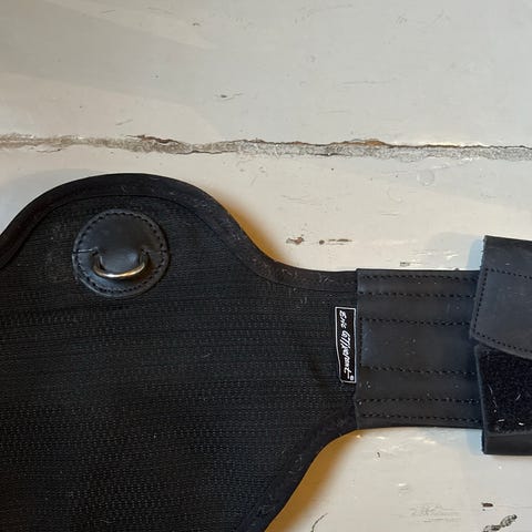 60 cm gjort selges. Noe elastisk er den nok, pent brukt og ikke noe rust på spennene
