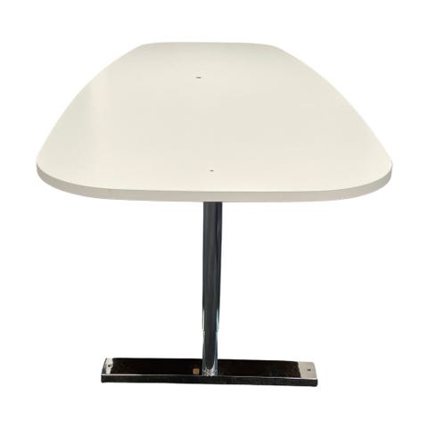 Produktbeskrivelse Solid møtebord med en elegant mørk grå laminat bordplate og et robust understell i metall. Bordet har en moderne stil med rene linjer og et minimalistisk uttrykk, noe som gjør det perfekt for møterom, kontorer og samarbeidssoner. Den romslige bordflaten på 240 x 120 cm gir god plass til flere deltakere, og den integrerte kabelkanalen gjør det enkelt å holde orden på ledningene, noe som bidrar til et ryddig arbeidsmiljø. Spesifikasjoner Dimensjoner: 240 x 120 x 75 cm Finish/look bordplate: Mørk grå laminat Understell: Metall Form: Rektangulært Tilleggsfunksjoner: Integrert kabelkanal Tilstand Bordet er godt brukt og mangler kantlist men gir fortsatt et helhetlig godt inntrykk og er fullt funksjonelt til møte- og kontorbruk. Bærekraft hos Secundo Ved å velge et brukt møtebord fra Secundo forlenger du levetiden til kvalitetsmøbler og reduserer miljøbelastningen. Dette produktet er kvalitetssikret og klart for et nytt liv i ditt møte- eller arbeidsrom.