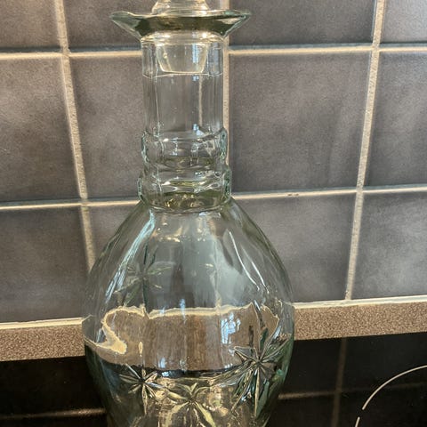 Karaffelen er vakkert dekorert med fugler. Den er 29 cm høy og rommer ca 1,5 liter.