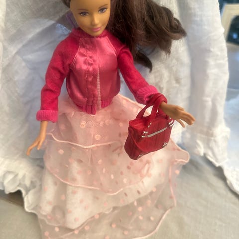 Barbie Rosa lekescooter for barn i rosa farge med brunt sete. Laget av plastmateriale, designet for lek og moro for barn. Kan leveres i Oslo mot et avtalt tillegg .