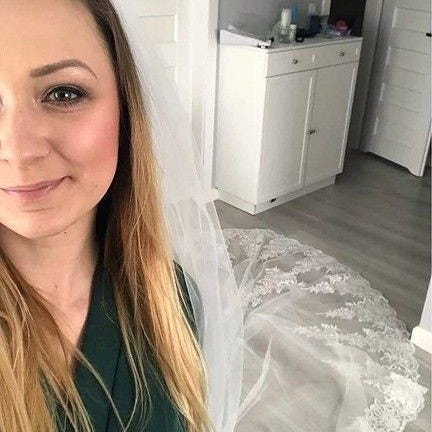 nydelig og lite brukt brudeslør, Sløret er langt.