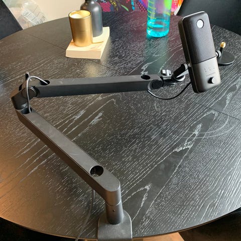 Mikrofonen er Rode NT-USB+, en prisvinnende mikrofon perfekt for podkaster, lydinnspilling, voice-over; osv...