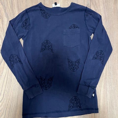 Pent brukt POMPdeLUX genser i str 134. Mørkblå farge med gullprikker i stoffet.