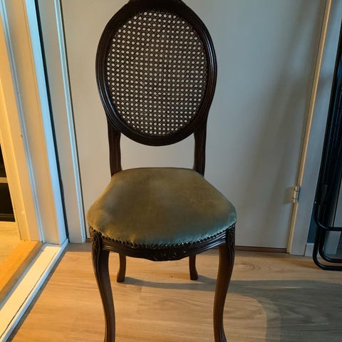 Stolen har i ettertid blitt omtrukket. Stolen har noe alderspreg og «løse» ledd som er vanlig grunnet alder. Den er alikevel fin å sitte på