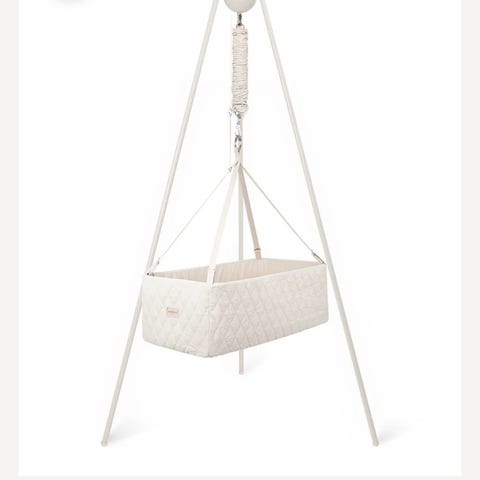 Moonboon med flat vugge. Connect motor med Bluetooth og mulighet for app styring. Kjøpt høsten 2024. Pent brukt. Ingen skader eller store slitasjer, kun noen sår i plasten inni karabinkrokene som fester fjæren. Har ingen betydning for sikkert feste av vuggen, plasten er kun så metallet ikke skal gnisse direkte mot hverandre.