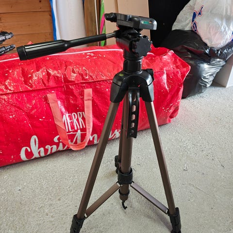Slik U-200 tripod med justerbare ben og hodet for kamera. Passer til ulike kameraer og gir stabil støtte for fotografering.