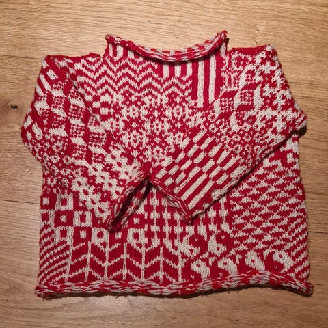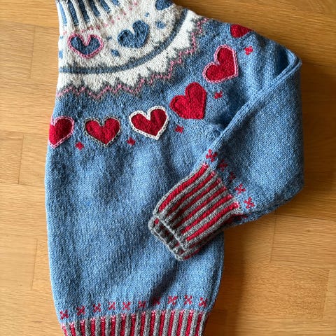 Ny hjemmestrikket ullgenser med søte kaniner.